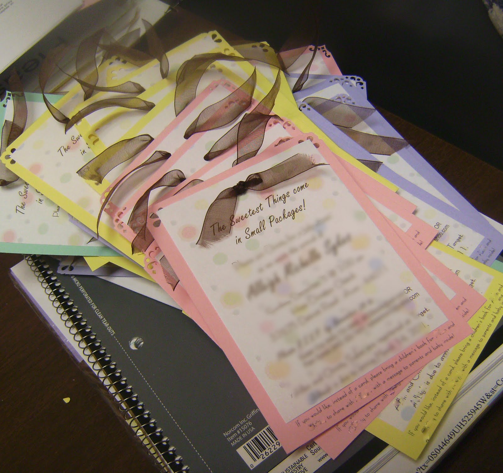 I also received some compliments on the Baby Shower Invites I put together to celebrate the fact that we will soon have a Grand Daughter! That's right! They found out that it will be a girl! And she has a name! And we have planned a shower! Let the frilly, pink knitting begin! (Oh, and start thinking of a blog name for the little peanut before March!)
